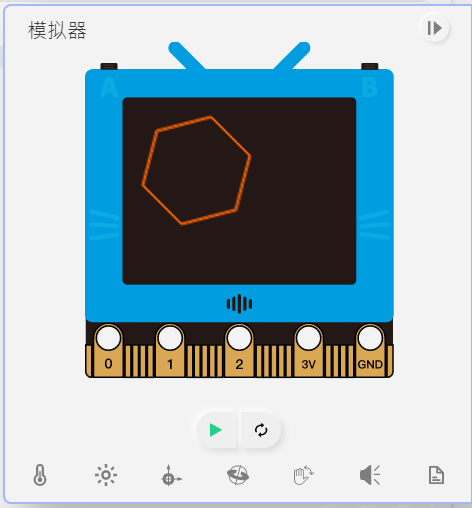 screen.polygon(50,50,6,40,2,225,(255,100,0),0)