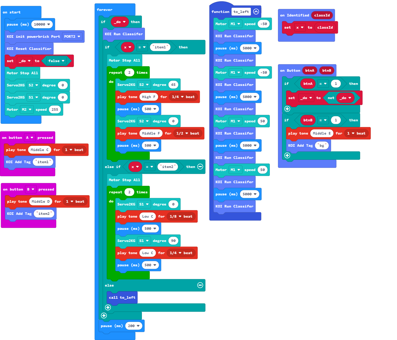 4. Aim the KOI at the background and press B to train the model to recognize the background.