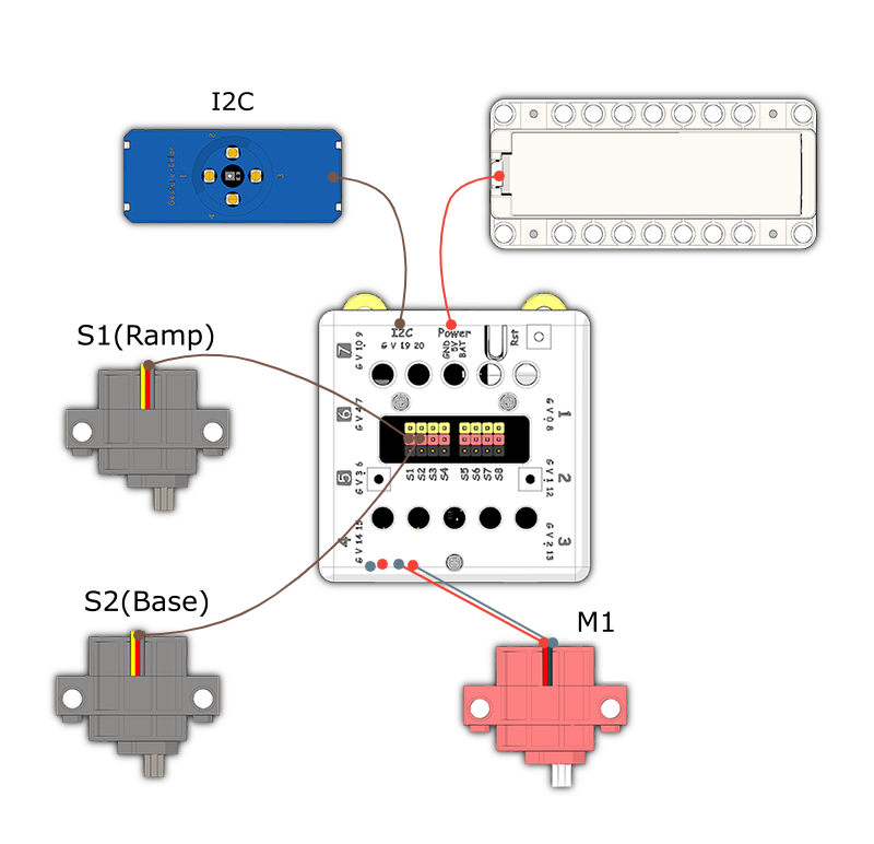 Place the colored bricks onto the ramp.