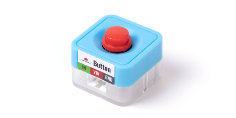 This is a button module in the Sugar series, the pin holes on the back allow compatibility with plastic building bricks.
