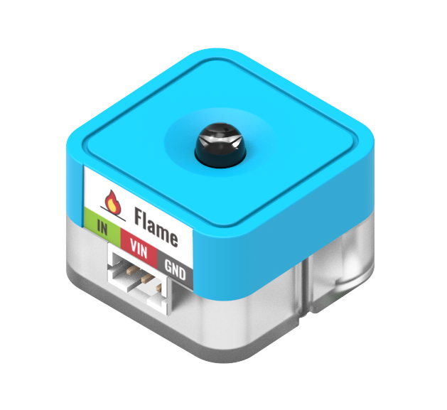 This is a flame sensor in the Sugar sensor series. The pin holes on the back allow compatibility with plastic building blocks.
