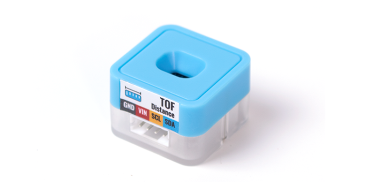 This is a TOF(Time of Flight) Distance sensor in the Sugar sensor series, the pin holes on the back allow compatibility with plastic building bricks.